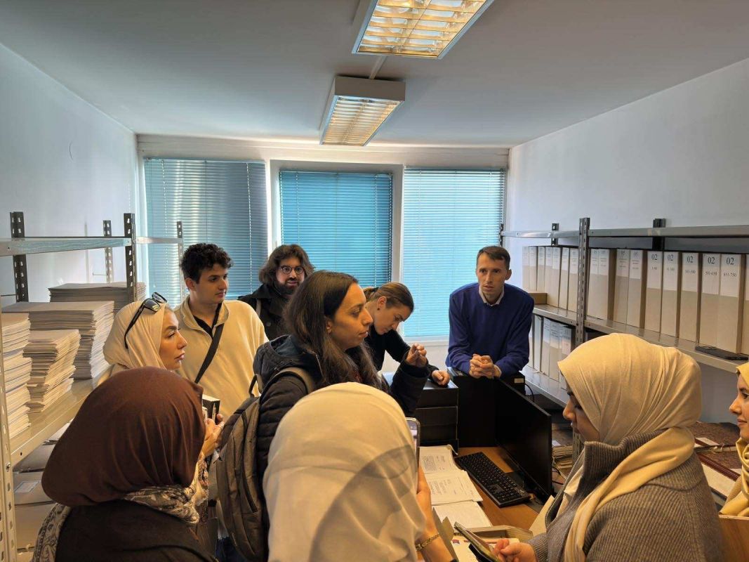 U sklopu posjete, obišli su biblioteku i arhivu Instituta, gdje ih je dr. sci. Alma Hajrić-Čaušević upoznala sa najnovijim izdanjima Instituta, kao i dijelom arhivske dokumentacione građe kojom Institut raspolaže i koju primarno koristi za potrebe naučnih istraživanja. Studenti su pokazali posebno interesovanje za arhivsku dokumentaciju, uključujući izjave svjedoka zločina.