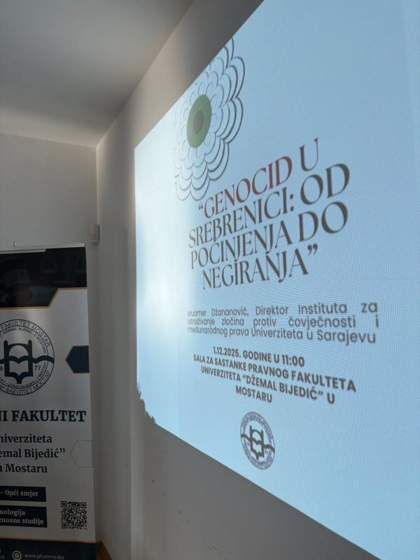 Na Pravnom fakultetu Univerziteta „Džemal Bijedić“ u Mostaru dr. sc. Muamer Džananović, direktor Instituta za istraživanje zločina protiv čovječnosti i međunarodnog prava Univerziteta u Sarajevu, održao je predavanje na temu „Genocid u Srebrenici: od počinjenja do negiranja“.