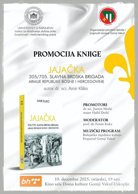 Nakon promocija u Jajcu i Travniku, treća promocija knjige „Jajačka 305/705. Slavna brdska brigada Armije Republike Bosne i Hercegovine“, autora dr. sc. Amira Klike, bit će upriličena u Gornjem Vakufu. Knjiga je nedavno objavljena u izdanju Univerziteta u Sarajevu – Instituta za istraživanje zločina protiv čovječnosti i međunarodnog prava i Općine Jajce.