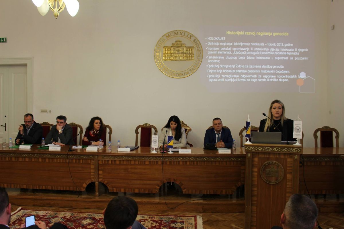 Drugi panel obuhvatio je izlaganja dr. Sabahudina Šarića o uzmicanju prava pred ideologijom, doc. dr. Sunčice Hajdarović o važnosti sankcionisanja negiranja genocida, dr. Almira Grabovice o ulozi njemačkog pravosuđa u procesuiranju genocida u Bosni i Hercegovini, dr. Jasmina Medića o propagandi i dehumanizaciji u Holodomoru, Holokaustu i genocidu nad Bošnjacima, te mr. Lamije Muftić o praksi međunarodnih sudskih instanci u kontekstu zločina u Palestini.