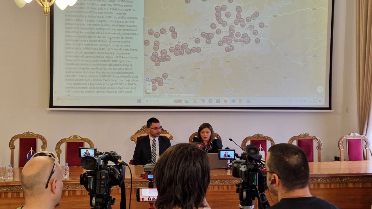 Interaktivna mapa “Granatiranje Sarajeva u vrijeme opsade” u digitalnoj formi donosi rezultate dugogodišnjih naučnih istraživanja o masovnim zločinima nad civilima Sarajeva, a obuhvata 116 lokacija na kojima je, u istom trenutku i na istom mjestu, ubijeno troje ili više civila.